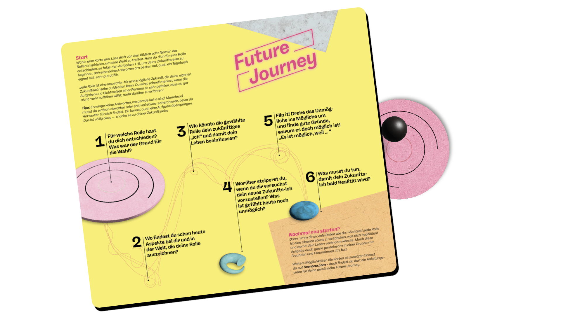 Nutze die Persona-Karten als Sparrings-Partner und starte deine individuelle “Future Journey” mit unserer Orientierungs-Karte, um dein Zukunfts-Ich zu finden. Folge den Schritten und gehe auf eine Reise der Selbstreflexion.